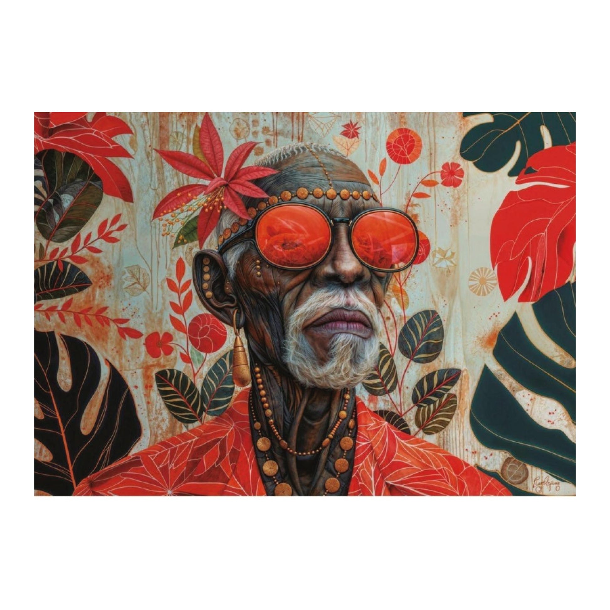 🎨 Detailed illustration with a tropical theme and exotic fauna.